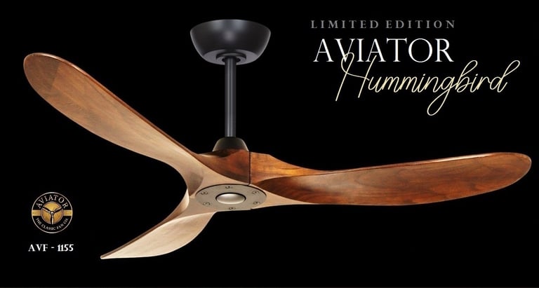 The Aviator Hummingbird Classic ceiling fan is a stunning example of craftsmanship, made entirely from 100% solid timber. Each fan is meticulously handcrafted by our skilled master craftsmen, ensuring that no two pieces are exactly alike. The rich, natural grain of the wood not only adds to its aesthetic appeal but also guarantees durability and long-lasting performance. With its classic design, the Aviator Hummingbird blends seamlessly into any décor, bringing a touch of elegance and sophistication to your space. Perfect for both modern and traditional interiors, this ceiling fan not only cools your room but also serves as a beautiful focal point. Experience the fusion of functionality and artistry with the Aviator Hummingbird, a true testament to fine craftsmanship.