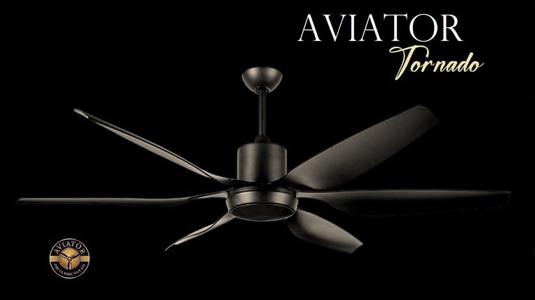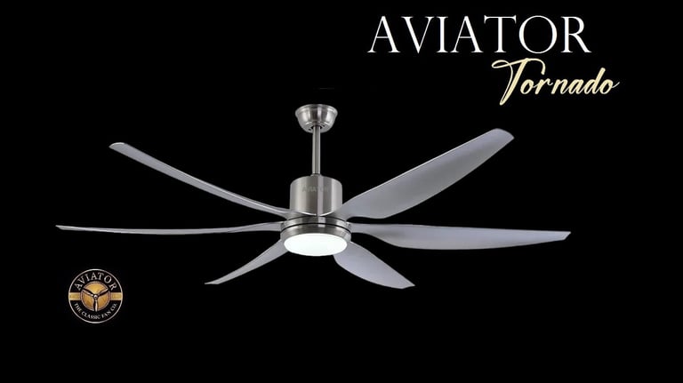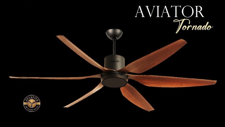 The Aviator Tornado is an impressive six-winged ceiling fan, designed to deliver powerful airflow in a remarkable way. With a generous circumference of 66 inches, it is not just a fan; it's a statement piece for any room. Engineered for efficiency, the Aviator Tornado ensures that every corner of the space receives a refreshing breeze, making it ideal for larger areas or high ceilings. Its sleek design and superior performance make it an excellent choice for those who value both style and functionality in their home decor. Whether you’re enjoying a warm summer day or looking to circulate air in a spacious environment, the Aviator Tornado stands out as the ultimate solution for comfort and elegance. Experience the difference and transform your living space with this extraordinary ceiling fan.