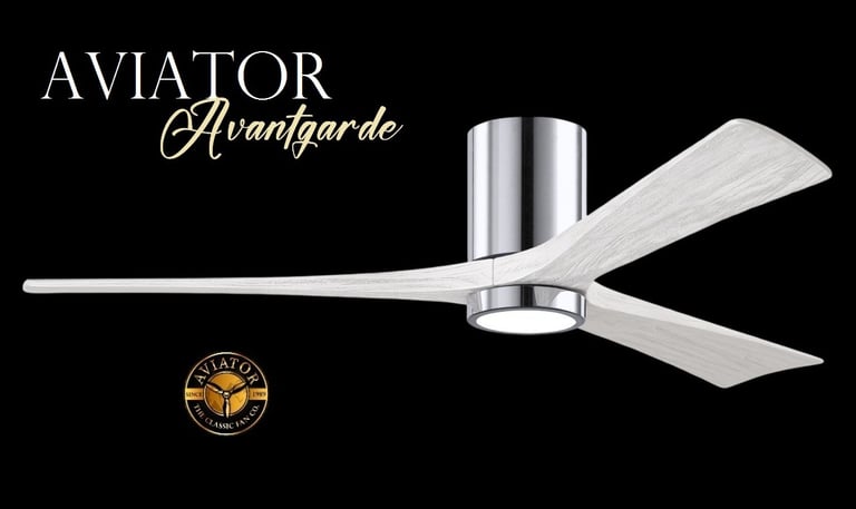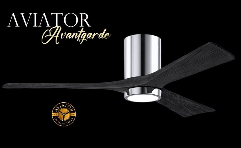 The Aviator Avantgarde is a limited edition designer ceiling fan that epitomizes elegance and sophistication in contemporary living spaces. Designed specifically for modern apartments and luxury villas, it features a unique and stylish aesthetic that enhances any room's decor. The innovative hugger mount system allows for easy installation directly onto any ceiling soffit, making it a versatile choice for various ceiling types. With its sleek lines and premium finishes, the Aviator Avantgarde not only provides a refreshing breeze but also serves as a striking centerpiece in your home. Elevate your interior design with this exquisite ceiling fan, where form meets function in perfect harmony.